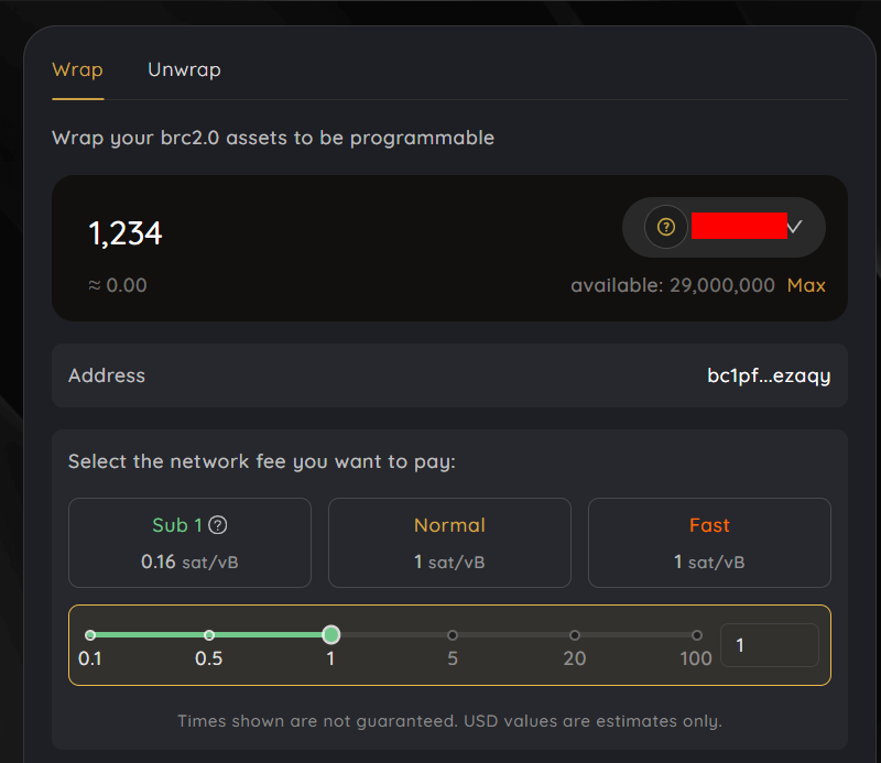 - Enter the amount which you want to wrap up and select the network fee.